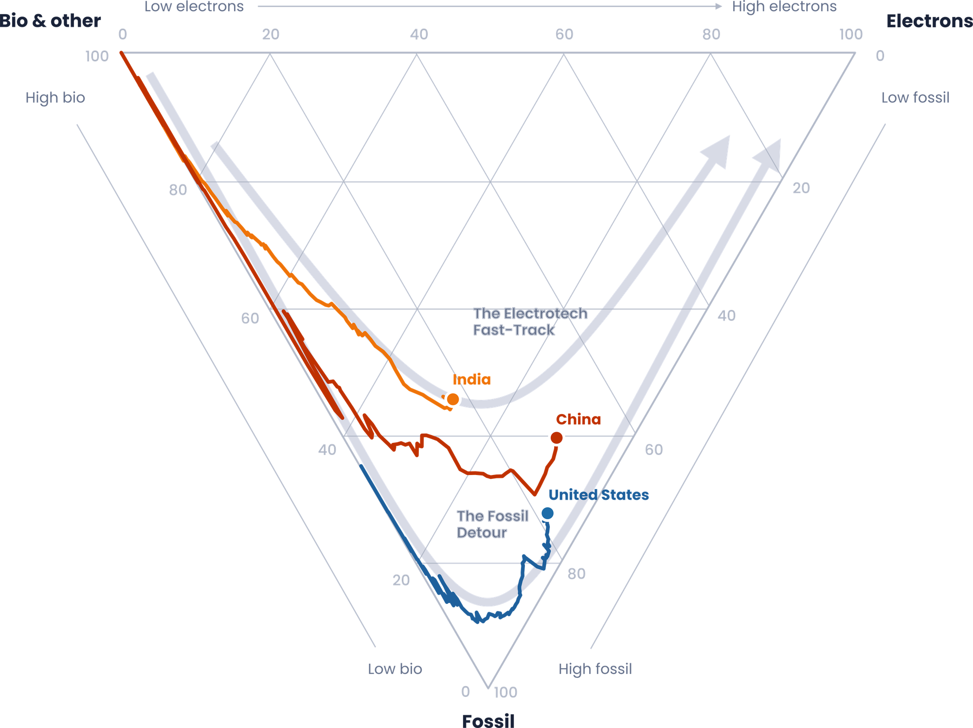 India maakt een snellere transitie van bio-energiebronnen naar elektriciteit. Het voordeel van later starten. Hoe dit kan, wordt in het artikel uitgelegd.