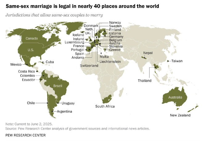 Het homohuwelijk wordt nu in 39 landen op de wereld erkend. Nederland was het eerst, in 2001. Thailand het eerst in Zuidoost Azië, in 2025.