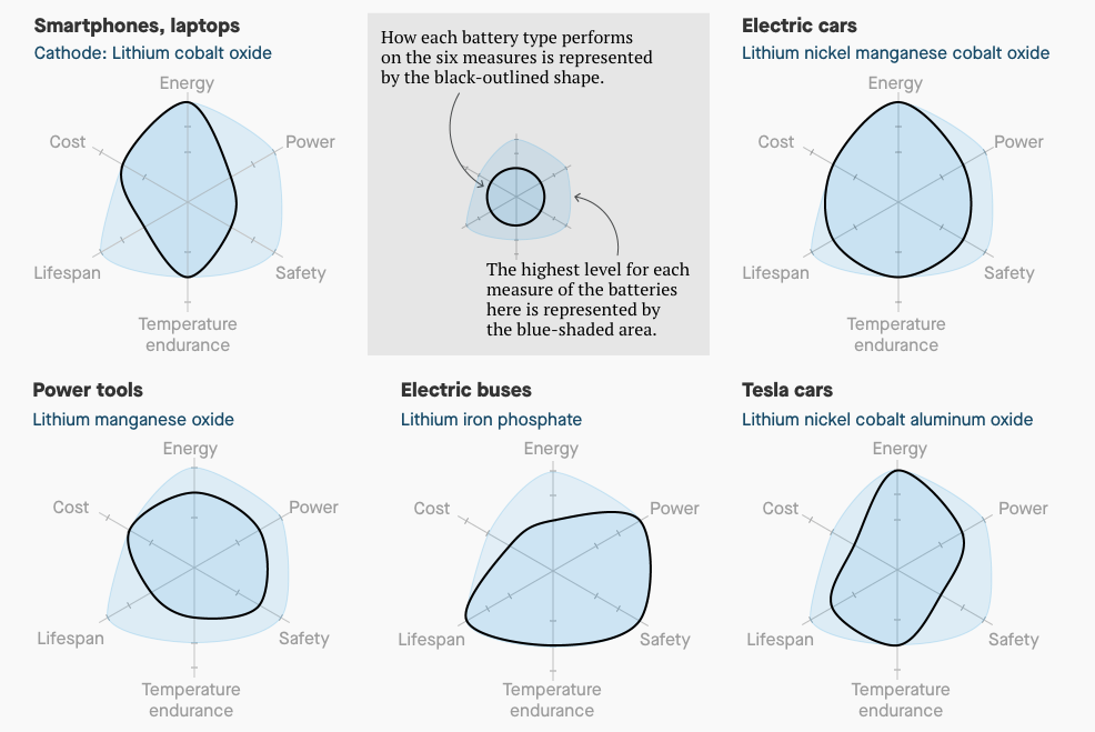Nieuwe aflevering in de lovenswaardige serie van Quartz over de energietoekomst. Waarom hebben accu’s (oplaadbare batterijen) nog steeds niet benzine, olie, gas, wind, waterstof, etc. vervangen als energiebron? Omdat wetenschappers er nog steeds niet in geslaagd zijn de juiste balans te vinden tussen energie, kracht, levensduur, veiligheid en temperatuurbestendigheid. Mede daarom zijn ze nog steeds te duur in vergelijking met andere energiebronnen.