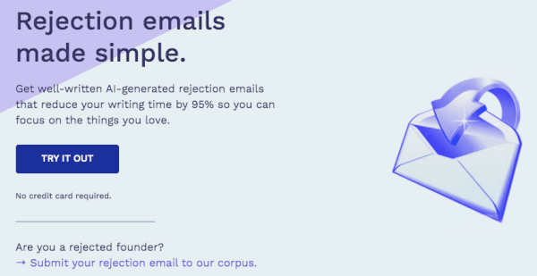 Nieuwe website unfortunately.io genereert afwijzingsbrieven. Voor als u honderden sollicitaties krijgt. Of tientallen aanvragen voor start-up financiering. Of iets anders. ‘Goed geschreven, AI-generated,’ zegt de website. Kies de toonhoogte: resoluut, begripvol, te druk, ‘kan mijn partners niet mee krijgen ….’