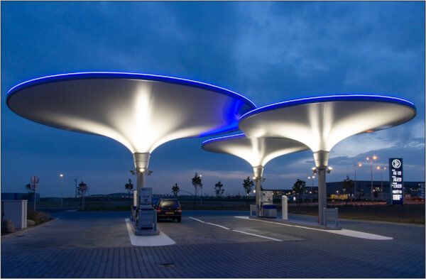 Naar aanleiding van het stukje over mooie pompstations stuurde lezer P. Bakker dit, uit ‘De Orkaan:’ Het NXT-tankstation op bedrijventerrein Hoogtij in Zaandam. Ontwerp van West Architecten, dit jaar geopend. (Meer foto’s hier.)