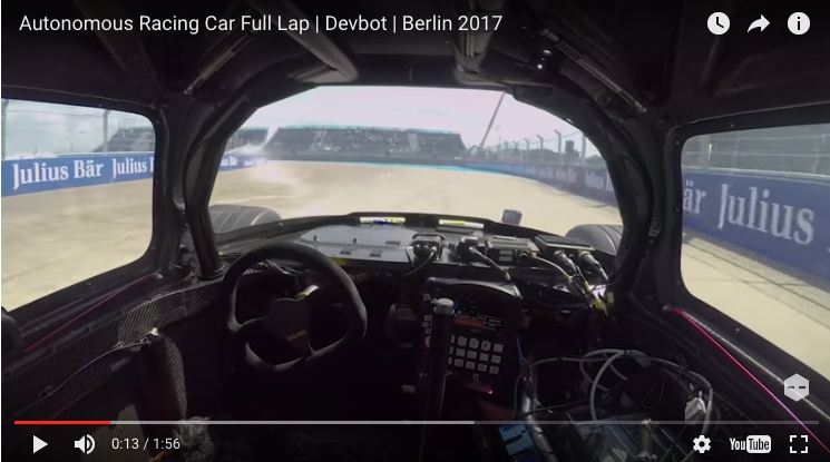 Rij mee met de Roboracer, die zich uiteindelijk in het startveld van de Formule E (soort elektrische formule 1) wil nestelen. Zonder coureur, wat 71 kilo scheelt, en zonder schade een ronde met vliegende start op het formule E-circuit in Berlijn in 1 minuut 40. Daarmee is hij de menselijke coureurs tot op 30 seconden genaderd.