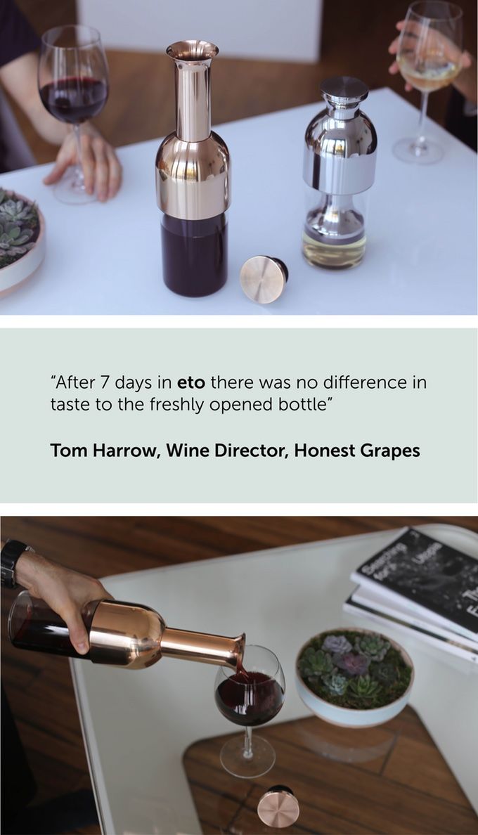 Op Kickstarter: nieuwe decanteerfles die wijn 12 dagen goed houdt door zuurstof in de fles te minimaliseren. Nu €68, zometeen €90.