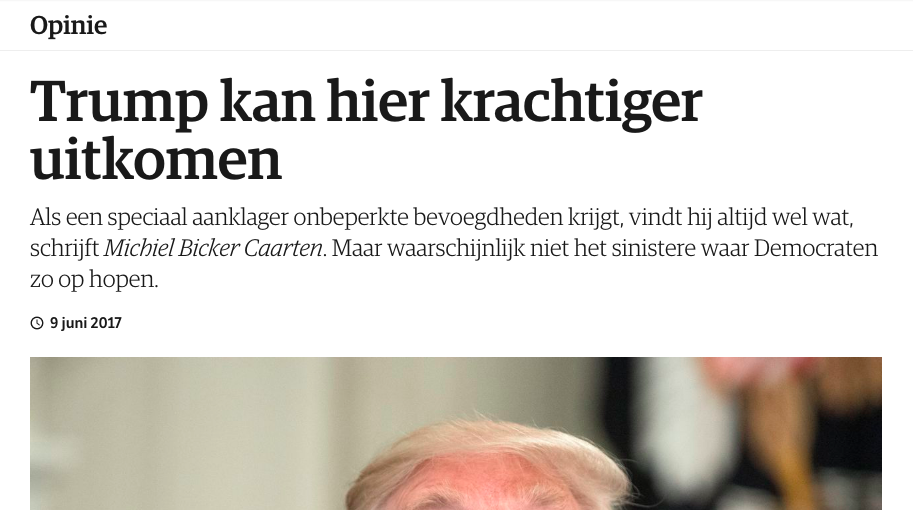 Dat Trump aan Comey vroeg om het onderzoek naar Michael Flynn te staken, is onbehoorlijk maar ja – politiek is een machtsspel. Je kunt het altijd proberen. Nog steeds geen ‘impeachable offense.’ Dat Comey dat onderging als intimidatie, dat moet hij maar met zijn psychiater bespreken. Zijn gevoelsleven is constitutioneel niet relevant.