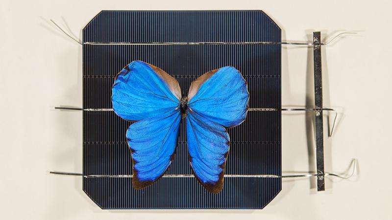 Universiteit in Australië heeft een nieuwe techniek ontwikkeld waardoor zonnepanelen veel efficiënter werken. De nanostructuurtjes zijn afgekeken van de Morpho Didius vlinder. Die heeft knalblauwe vleugels die lijken te schitteren onder bepaalde invalshoeken van licht. Dat blijkt te komen door nano-structuren in de vleugels, die licht weerkaatsen. Door die kegelvorm te repliceren konden de onderzoekers licht manipuleren: blauw, groen en ultraviolet naar de perovskietlaag; rood, oranje en geel naar de siliciumlaag. Zo werkte het paneel optimaal. Kan later wellicht ook gebruikt worden om te moduleren hoeveel licht en/of warmte door ramen van gebouwen komt.