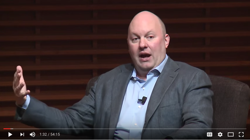 Investeerder Marc Andreessen van Andreessen Horowitz (bijgenaamd A16Z) is zo iemand waar je altijd iets van opsteekt. In november 2016 was Andreessen te gast bij Stanford. Michiel Hubeler bekeek de registratie van het gesprek en noteerde: