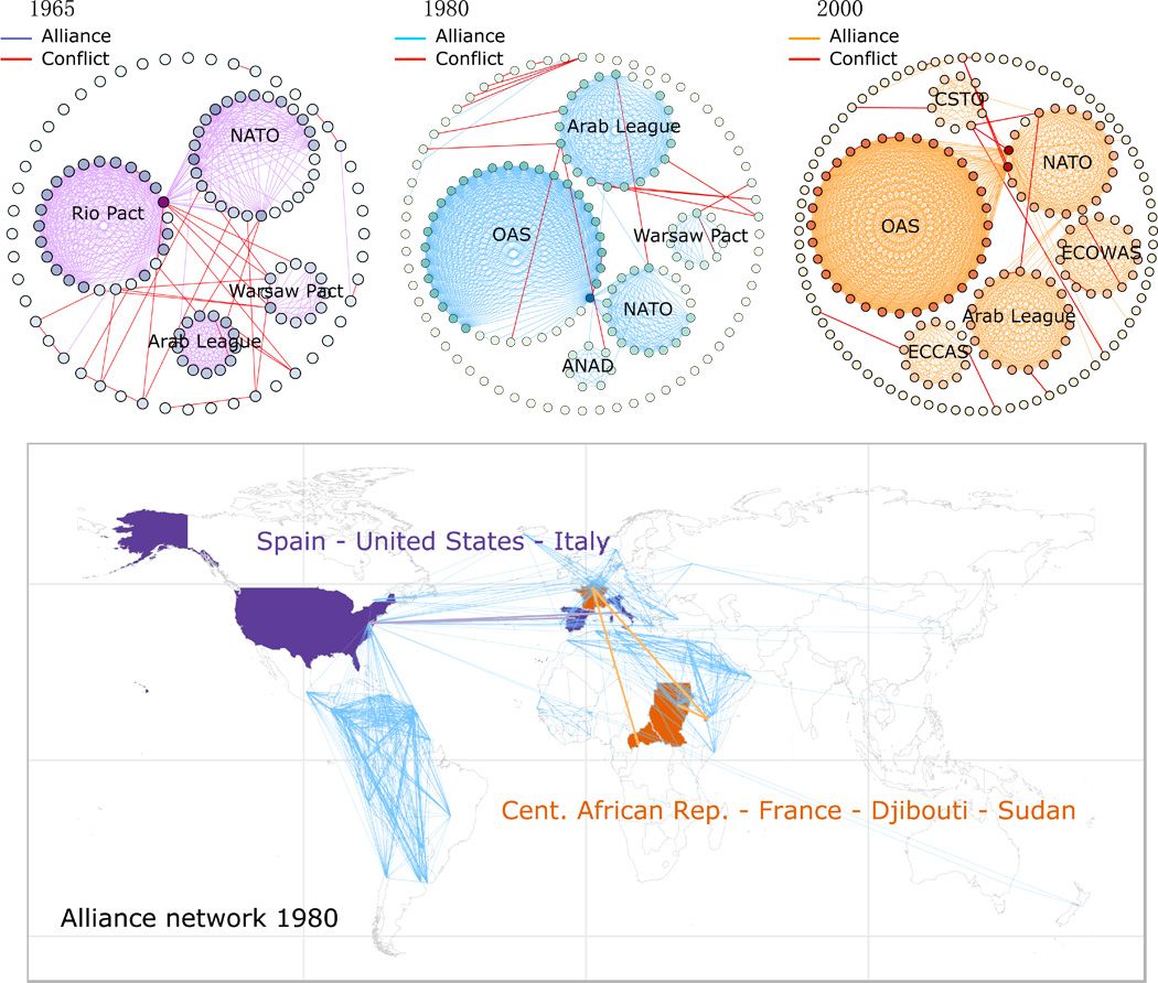 Allianties (zoals de NAVO, OAS, Arabische Liga en andere) helpen vrede te bewaren – zelfs tussen landen die drie graden van elkaar verwijderd zijn, dus vriendjes van vriendjes van vriendjes. Bijvoorbeeld Centraal Afrikaanse Republiek en Soedan.