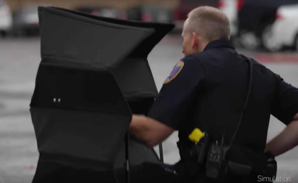 Een schild van Kevlar-panelen dat uitvouwt als een origami is makkelijk mee te nemen in de auto, in 6 seconden uit te vouwen, en beschermt meerdere gebruikers. Ontwikkeld door Brigham Young U.