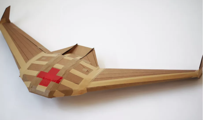 Waarom in vredesnaam van papier? Een gimmick? Toch financiert Darpa (de technologietak van het Amerikaanse Ministerie van Defensie) de ontwikkeling. Want een papieren drone is voor eenmalig gebruik en heeft dus twee keer zo veel bereik als een gewone – hij hoeft namelijk niet terug te vliegen. Deze heeft bovendien niet eens een motor – hij zweeft naar zijn doel. Wel met sensoren en stabilisatoren en een computertje dat de vleugels kan aanpassen om het vliegpad te beïnvloeden. Om medicijnen of ammunitie of bommetjes te bezorgen.