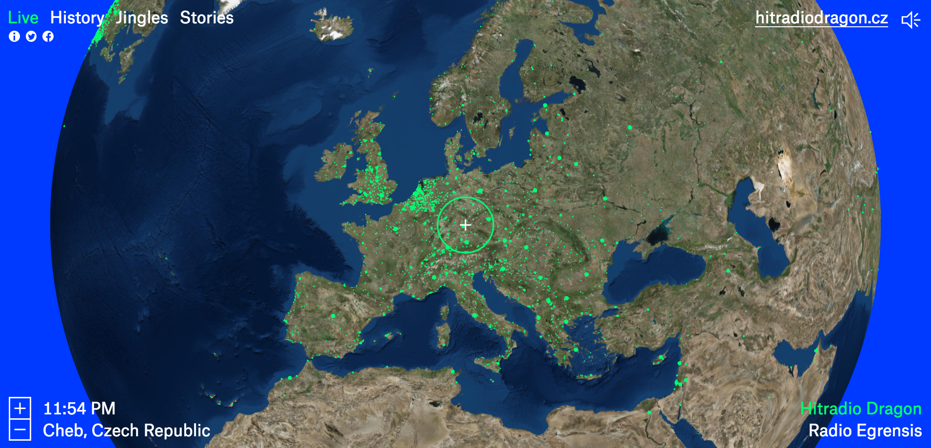 ‘De hele wereld’ lijkt wel een thema te worden op De Bicker, zo aan ‘t eind van het jaar. Deze site doet wat TuneIn doet maar dan met beeld: je kunt de wereldbol ronddraaien en inzoomen en kijken wat voor radiostations er zijn, en ze dan beluisteren. Ooit naar Hitradio Dragon uit Cheb, in Tsjechië geluisterd …? (tip van A. van Heemstra)