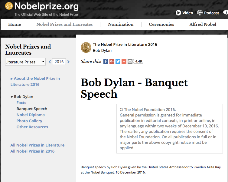 Bob Dylan's Nobel toespraak