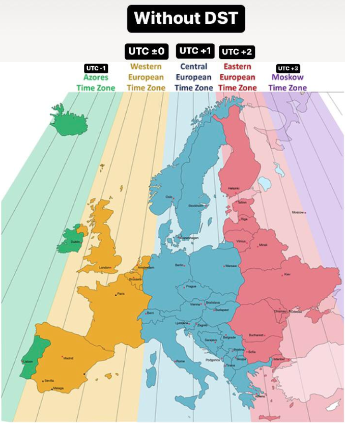 Als we zomertijd afschaffen? Kunnen we in plaats daarvan meerdere tijdzones in Europa maken, die beter aansluiten bij het aantal zonuren. Moet je wel de klok vooruit zetten als je de Duitse grens over rijdt ...