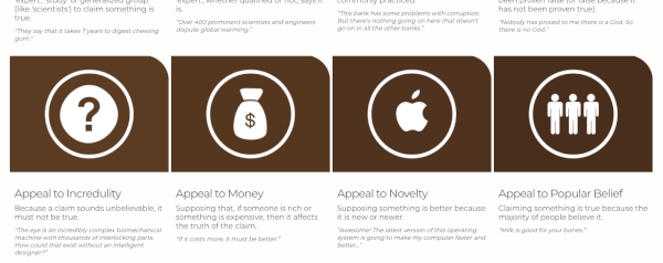 Om nepnieuws te herkennen – of drogredeneringen, of bluf – moet je wel een beetje retorica beheersen. Deze pagina brengt de verschillende soorten manipulaties en vergissingen in kaart en helpt ze te herkennen.