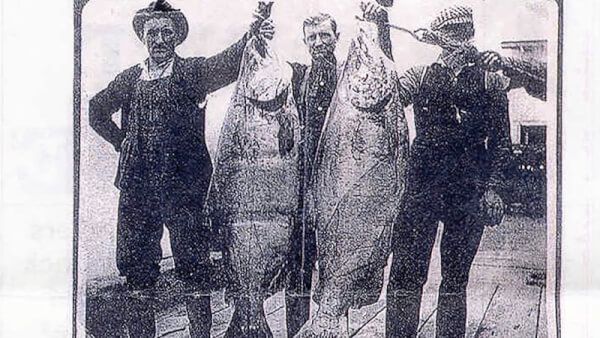 Vroeger werden aan de Westkust van de VS en Canada gigantische zalmen gevangen. Chinooks van 53 (links) en 55 (rechts) kilo, zoals op deze foto uit ca. 1910. Nu niet meer. Waar zijn ze gebleven? Orca’s, is het korte antwoord. De orca populatie is de laatste 15 jaar gegroeid in de Noordoost hoek van de Stille Oceaan. Er zijn er nu ongeveer 2.300 en die eten per jaar 10 miljoen kilo Chinook zalm – ongeveer even veel als de vissers ieder jaar uit het water halen. De grootste zijn de vetste en dus de lekkerste.