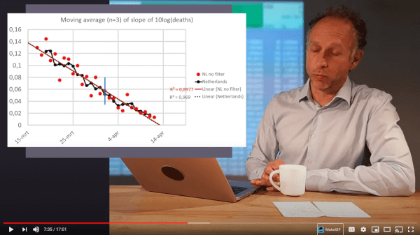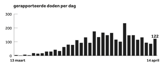 Vorige week hier aandacht voor data-analist Marc Mussaeus, die cijfers extrapoleerde en concludeerde: op dinsdag 14 april of daaromtrent zijn er geen nieuwe sterfgevallen geregistreerd door het RIVM met Corona als oorzaak. (zoals inmiddels iedereen weet worden een heleboel gevallen niet geregistreerd.) Maar dinsdag 14 april toonde de grafiek een ander beeld: